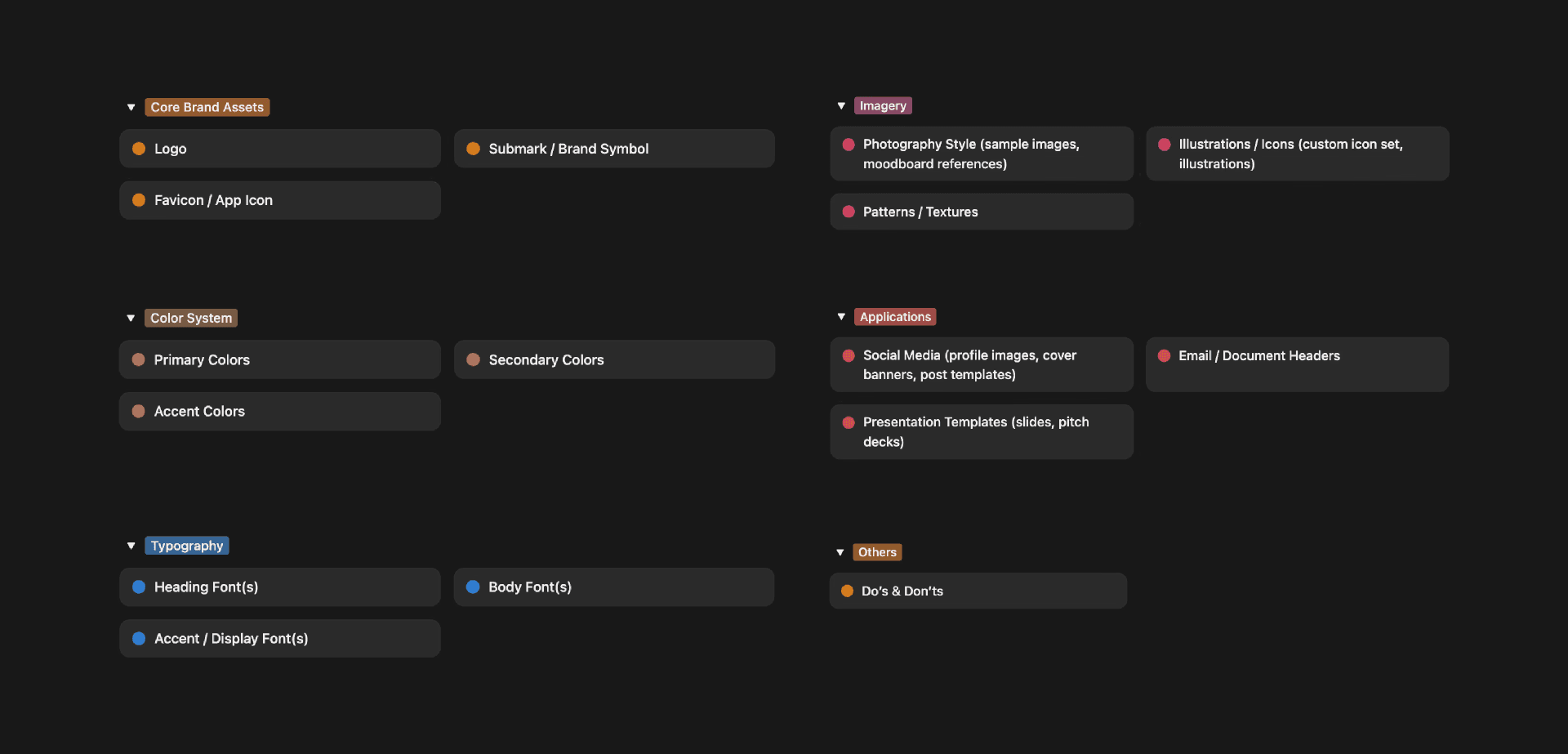 Keep your entire team on the same page. From brand mission to visuals, every guideline stays consistent and easily accessible inside one workspace.